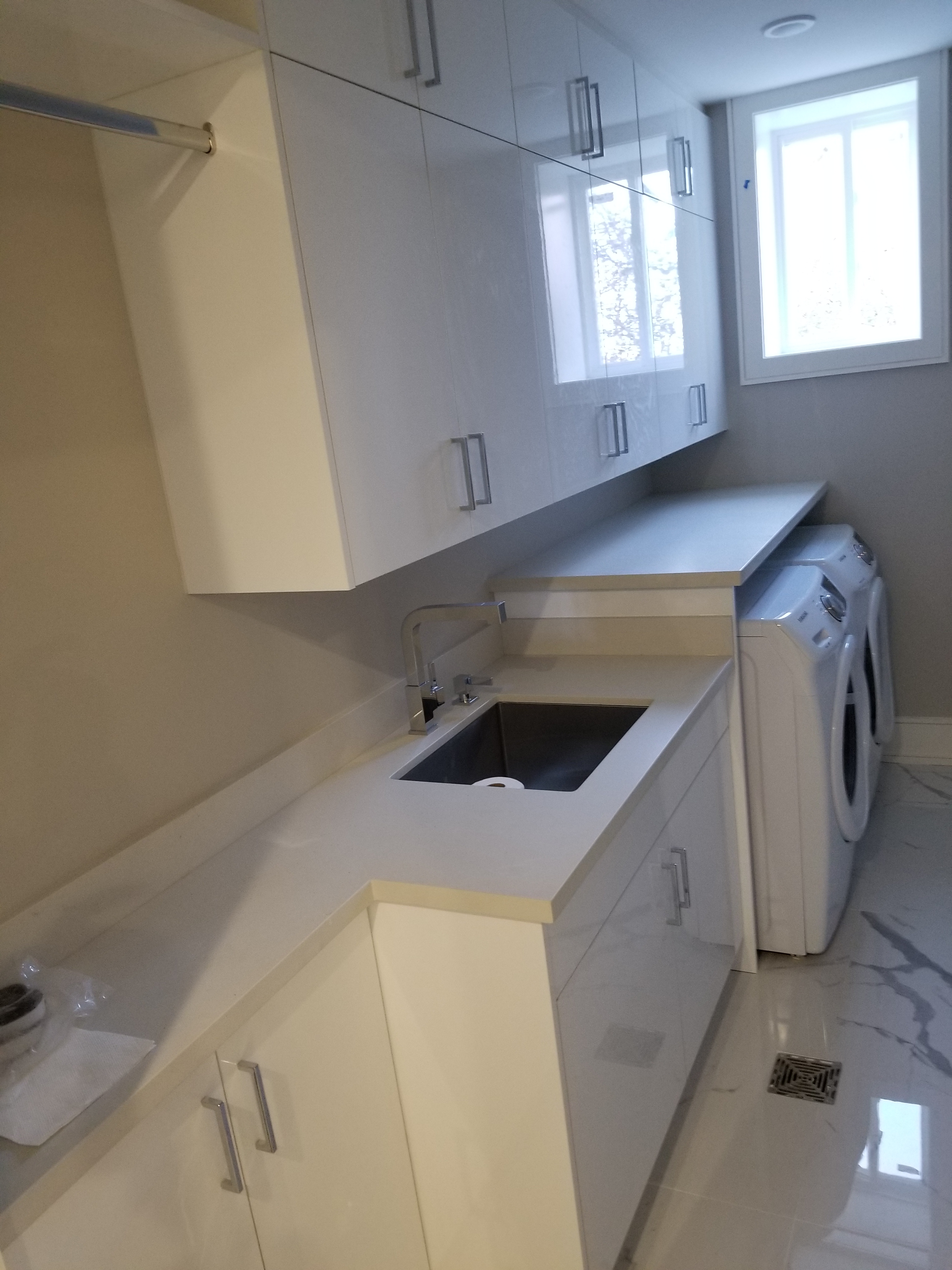 Our Laundry Room design and manufacturing are fabulous for any luxury design. These style and layout utilize elements such as wood grains, super high gloss finishes, whites, greys, soft beiges, bright and intense colours to create a smooth and modern style.